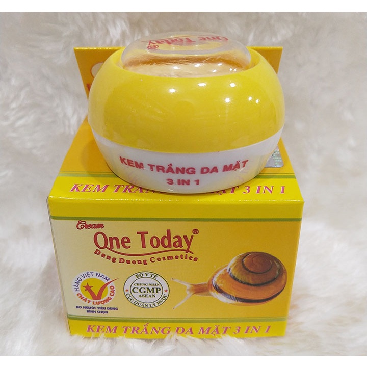 Trọng lượng: 05g Công Dụng: Kem trắng da mặt 3 in1 kết hợp giữa những thành phần thiên nhiên như tinh chất ốc sên, bột ngọc trai, sữa ong chúa cùng với các vitamin E, B3 và C giúp nuôi dưỡng và giữ ẩm cho làn da đồng thời giúp ngăn ngừa và giảm tình trạng mụn trên da