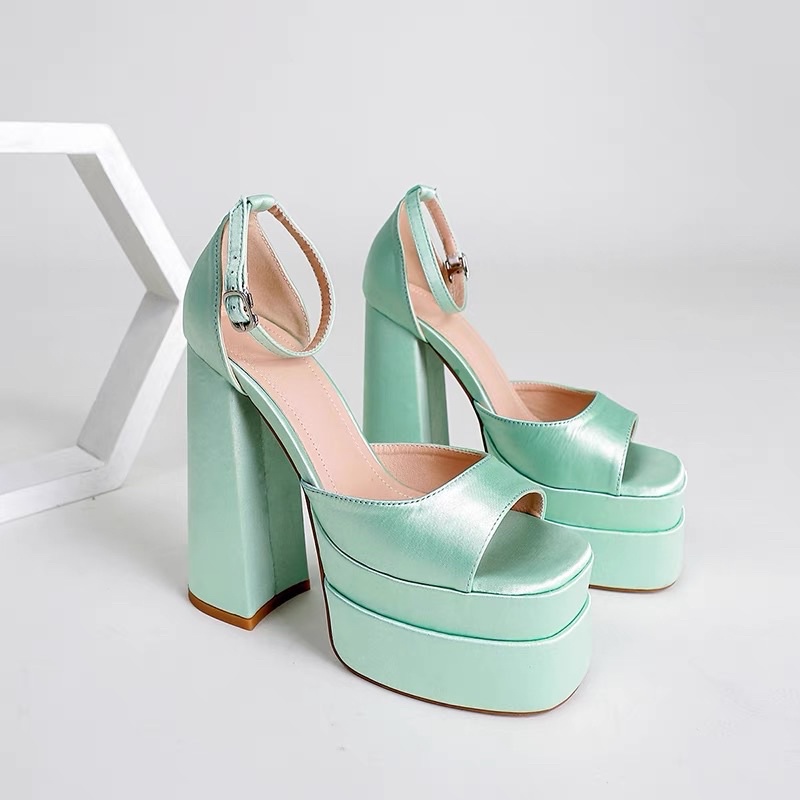 Order 🌺 Giày UK gót trụ đế đúp hở mũi quai cài 14cm