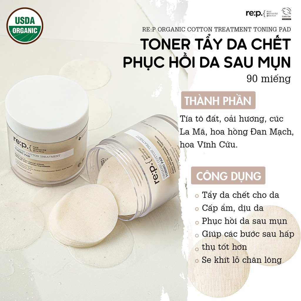 Pad Tẩy Da Chết Dành Cho Da Nhạy Cảm RE:P Organic Cotton Treatment Toning Pad 90 miếng Bulsan Beauty