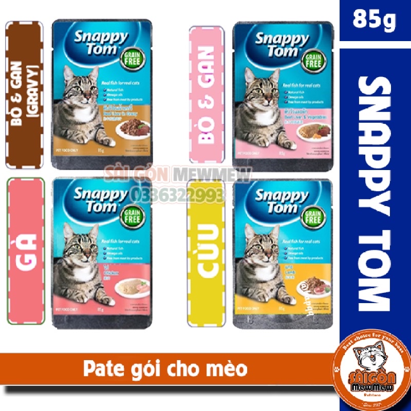 SNAPPY TOM DÀNH CHO MÈO LỚN 4 VỊ CHÍNH: + CHICKEN + CHICKEN GRAVY + THỊT CỪU + THỊT BÒ GRAVY * Thể tích: 400g *SNAPPY TOM DÀNH CHO MÈO CON 2 VỊ CHÍNH + CÁ NGỪ + THỊT GÀ *THỂ TÍCH: 150G * Công dụng: + Thức ăn hỗn hợp hỗ trợ hoàn chỉnh cho Mèo + Cung cấp những chất