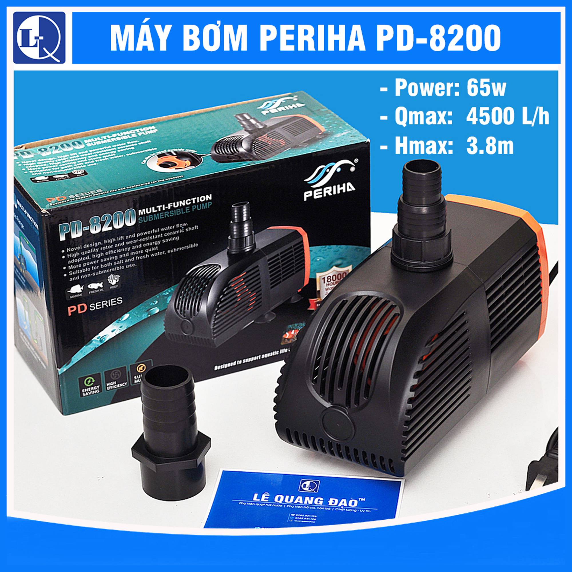 Periha PD-8200 65W - Máy bơm nước cho hồ cá koi, cá cảnh Máy bơm nước PERIHA PD-8200 65W lọc nước cho hồ cá cảnh là loại máy bơm cao cấp nhât rất nhiều công nghệ hiện đại và tâm huyết từ nhà sản xuất để tạo ra một sản phẩm có thể làm hài lòng những người dùng khó tính nhất có hiệu năng cao, tiết kiệm điện, tiếng ồn thấp. Thường được dùng để bơm nước cho hồ bán cạn, non bộ, tiểu cảnh, hồ cá rồng, cá koi. Model: PD-8200 Xuất Xứ: Periha Trung Quốc Trọng lượng sản phẩm: 2100 gram Thông số: Công suất: 65 W ,Chiều cao cột nước: 3.8 M, Lưu lượng nước tối đa: 4700 L/ H,Phi ống: 25 - 31 mm. Đặc điểm: + Sử dụng công nghệ bảo toàn năng lượng thông minh giúp giảm điện năng tiêu thụ + Thiết kế máy đẹp, chi tiết sắc sảo, chắc chắn, phần cứng đa năng. Công dụng: Làm máy bơm nước hồ cá Hướng dẫn sử dụng: để toàn bộ máy ngập trong nước. Hoặc sử dụng như máy bơm trên đất liền. Lưu ý khi sử dụng: thường xuyên vệ sinh máy để máy hoạt động được tốt hơn, tuổi thọ máy được cao hơn. Khi đang chạy máy có hiện tượng dừng lại, ngắt nguồn điện, tháo máy xem có bị bám bẩn, lông, tóc bám vào moto không. Giá sản phẩm trên Tiki đã bao gồm thuế theo luật hiện hành. Bên cạnh đó, tuỳ vào loại sản phẩm, hình thức và địa chỉ giao hàng mà có thể phát sinh thêm chi phí khác như phí vận chuyển, phụ phí hàng cồng kềnh, thuế nhập khẩu (đối với đơn hàng giao từ nước ngoài có giá trị trên 1 triệu đồng).....