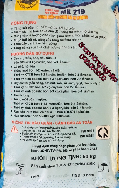 👉Thành phần: Hữu cơ 20 %; Zn 200 ppm; Cu 300 ppm; B 100 ppm; Mn 200 ppm; Fe 100 ppm; Vi sinh vật phân giải lân 1 x 106 CFU/gam;