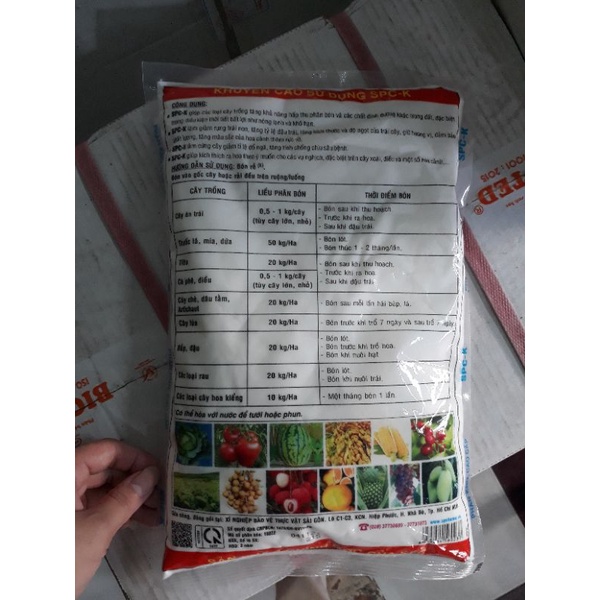 công dụng - Cung cấp đạm và kali cho cây trồng tăng chất lượng cây trồng , cứng cây, giảm rụng trái ,tăng tỉ lệ đậu quả ,tăng màu sắc cho quả ,tăng kháng thể cây trồng -sử dụng cho cây công nghiệp ,cây ăn trái ,rau màu
