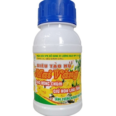 Phân bón siêu tạo nụ bông chùm cho mai vàng dạng SC Siêu Đậm Đặc 💁 Thành phần : + Đạm 10% + Lân 60% + Kali 10% - TE ( Vi Lượng ) : Zn : 200mg/l , Fe : 50mg/l , Cu : 50mg/l - Molipđen ( Mo ) : 50mg/l 💁 Công dụng Siêu tạo nụ bông chùm : - Kích thích tạo nụ hoa liên tụ