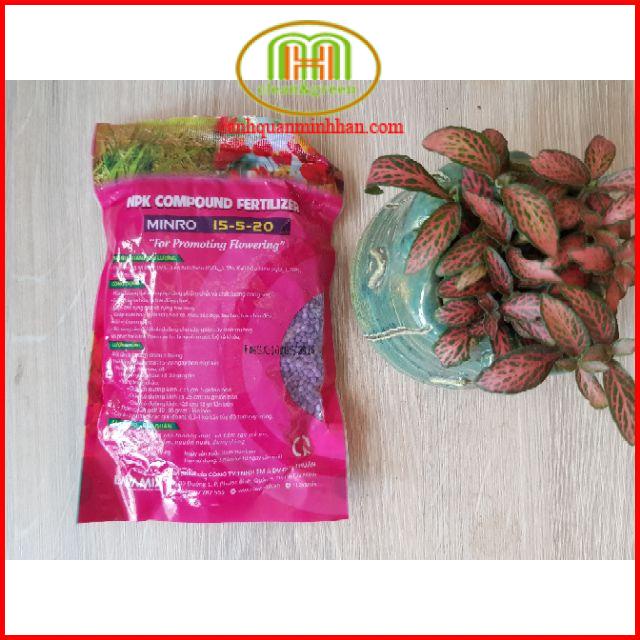 PHÂN BÓN HỖN HỢP NPK MINRO 15-5-20 “RA HOA, RA TRÁI - NUÔI HOA, NUÔI TRÁI” Thành phần định lượng: Đạm tổng số (Nts): 15%; Lân hữu hiệu (P2O5hh): 5%; Kali hữu hiệu (K2Ohh): 20%; Độ ẩm: 5%. Công dụng: - Hàm lượng Kali cao giúp tăng phẩm chất và chất lượng nông sản; - Gi