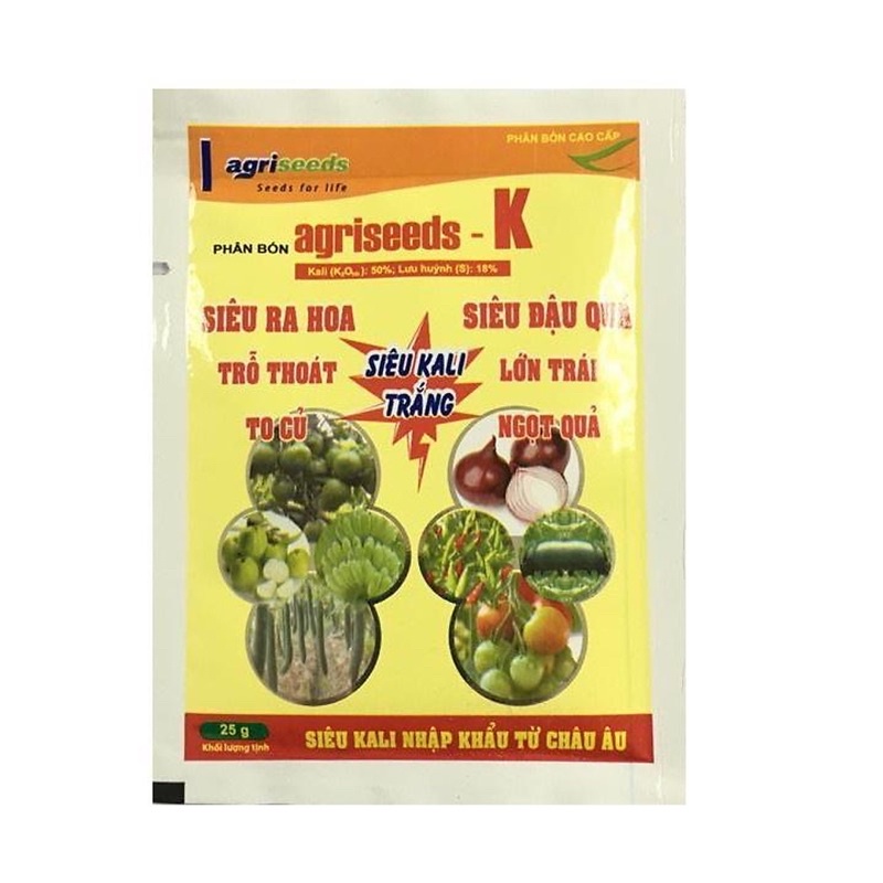 Phân Siêu Kali 25gr - Hoa, củ, quả siêu to, đẹp mã, xanh lá hàng đẹp, phân phối chuyên nghiệp.