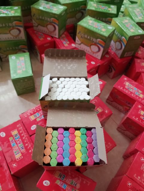 Phấn màu lục giác viết bảng hộp 50 viên, 10 màu SALE