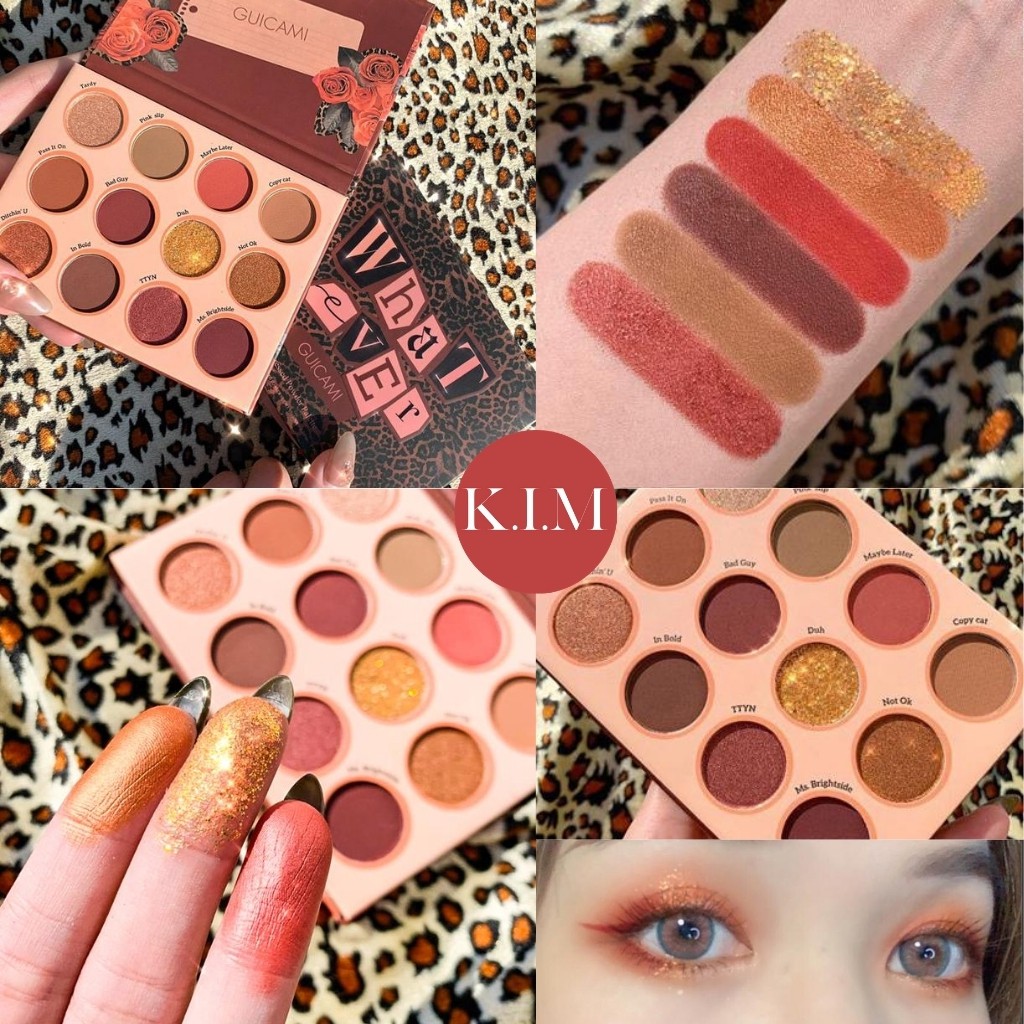 Phấn Mắt GUICAMI What Ever 12 Ô 🍁Phấn mắt GUICAMI What Ever với sự kết hợp của tone cam đất và hồng đất là lựa chọn hoàn hảo cho mùa thu đông & Những dịp party cùng bạn bè. Với 7 ô màu lì tone cam hồng nâu tự nhiên dễ phối, cùng 5 ô nhũ lấp lánh nhấn nhá cho đôi mắt