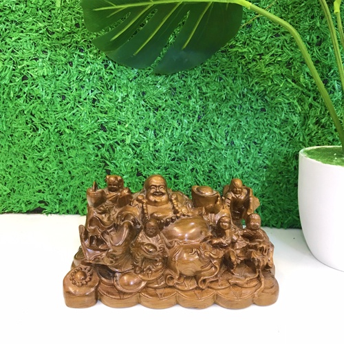 Phật Di Lặc Ngũ Phúc Bằng Gỗ Bách Xanh
