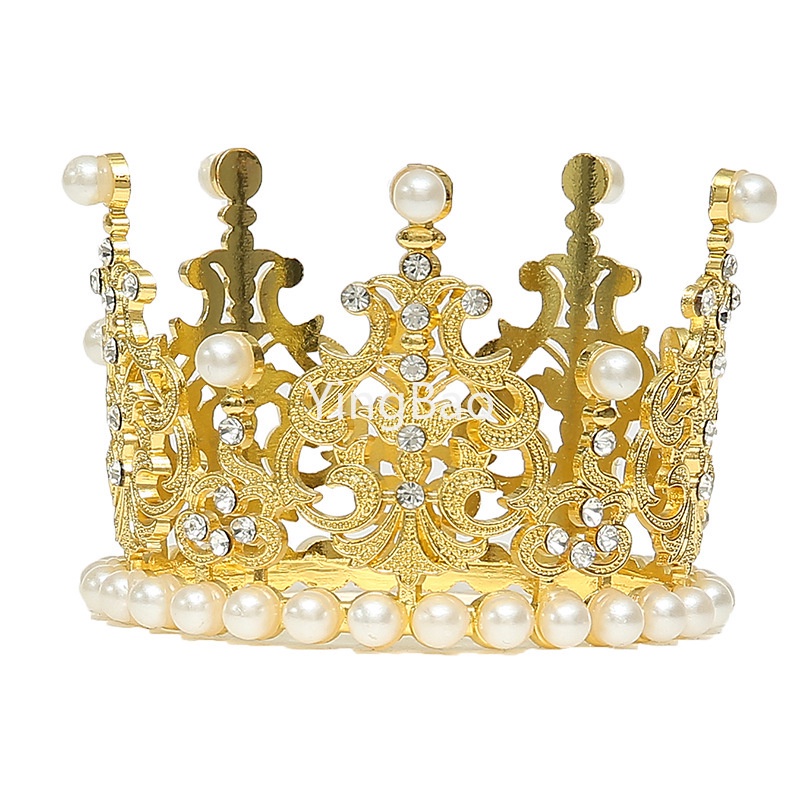 Phụ Kiện Cài Tóc Hình Vương Miện Đính Ngọc Trai Trang Trí Bánh Kem