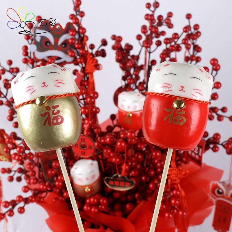 Phụ kiện treo trang trí tết, trang trí giỏ quà, đào đông, bình hoa giả