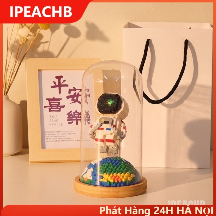 Phi Hành Gia Lắp ghép,đồ chơi xếp hình lắp ráp,dễ thương mặt hình có đèn tặng kèm hộp kính+đế gỗ+dây đèn led 1 mét