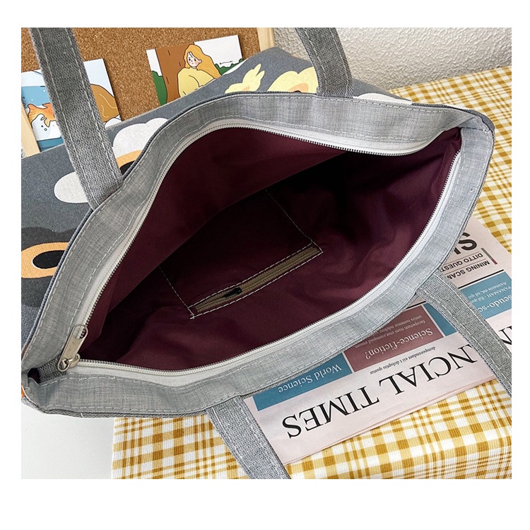 Phong Cách Hàn Túi Tote Vải Canvas Xách Tay Nữ Có Khóa Kéo Họa Tiết Thổ Cẩm To Công Sở Đựng Đồ Máy Tính Chơi Làm Học