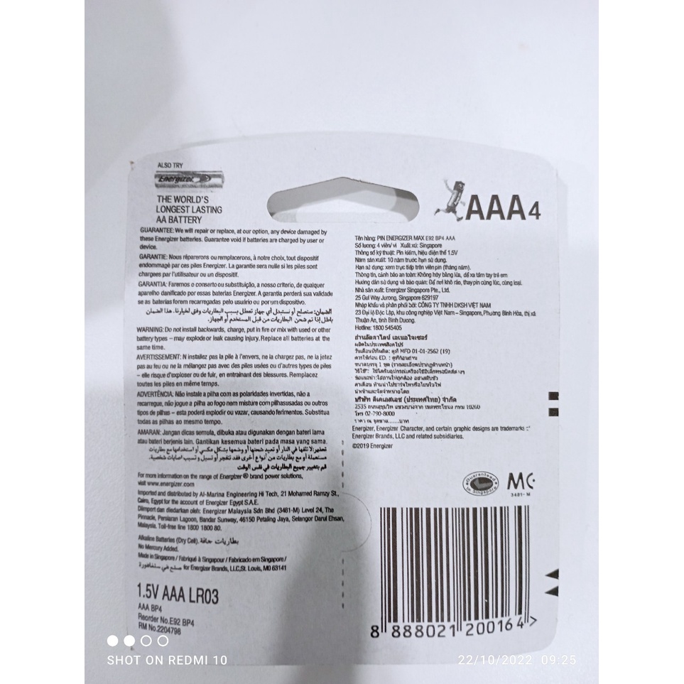 ✔️Cam kết sản phẩm chất lượng y hình ✔️Hàng sẵn, đặt là ship Ứng dụng: dùng cho các loại khóa cửa thông minh. Với ưu điểm dung lượng cao, không bị chảy nước - Chất liệu : pin alkaline , pin kiềm - Hàng chính hãng sản xuất tại Singapore - Nhập khẩu và phân phối bởi công ty DKSH Việt Nam - Luôn có thông tin nhập khẩu chính hãng trên từng vỉ pin - Pin Energizer là thương hiệu pin rất nổi tiếng trên toàn thế giới - Được đánh giá là loại pin tốt nhất trên thị trường hiện nay - Đóng gói: Vỉ 2 viên, vỉ 4 viên Cảnh báo: Không hủy pin bằng lửa. Không dùng chung với các loại pin khác. Để xa tầm tay trẻ em. Không tái chế. HDSD và Bảo quản: Để nơi khô ráo. Thay pin cùng lúc cùng loại. Nhà SX: Energizer Singapore Pte., Ltd 25 Gul WayJurong, Singapore 629197. Xuất xứ: Singapore. #energizer #pinaa #pinaaa #pinaaenergizer #pinaaaenergizer #e91 #e92 #pintieu #pindua #pin_AA_chuyên_dành_cho_khóa_thông_minh