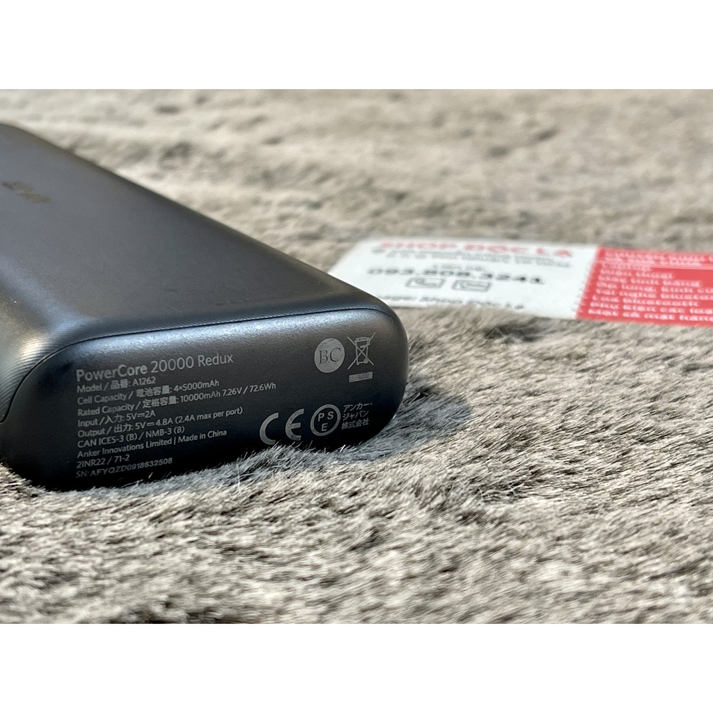 Pin dự phòng Anker PowerCore 20000 Redux A1262 *Nguồn gốc: nhập trực tiếp từ Mỹ *Tình trạng: đã qua sử dụng, ngoại hình còn mới 90% có trầy xước tuy nhiên không ảnh hưởng đến chất lượng hiệu năng lõi bên trong nha khách (như hình) *Bộ gồm: pin sạc dự phòng + dây cáp