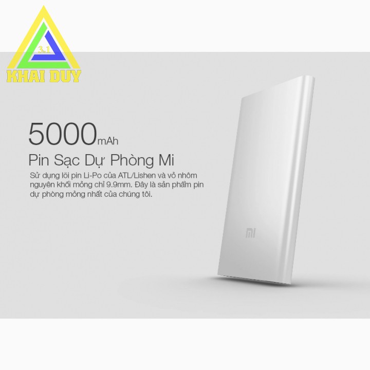 CAM KẾT HÀNG CHÍNH HÃNG XIAOMI >>> BẢO HÀNH 3 THÁNG Pin Sạc Dự Phòng Chính Hãng Xiaomi 5000mAh là sản phẩm mỏng nhất của thương hiệu Xiaomi, chỉ với 9,9mm. Được khách hàng săn đón từ những ngày đầu ra mắt tới nay bởi nhiều tính năng ưu việt: ✔Dung lượng 5000mAh ✔Siê