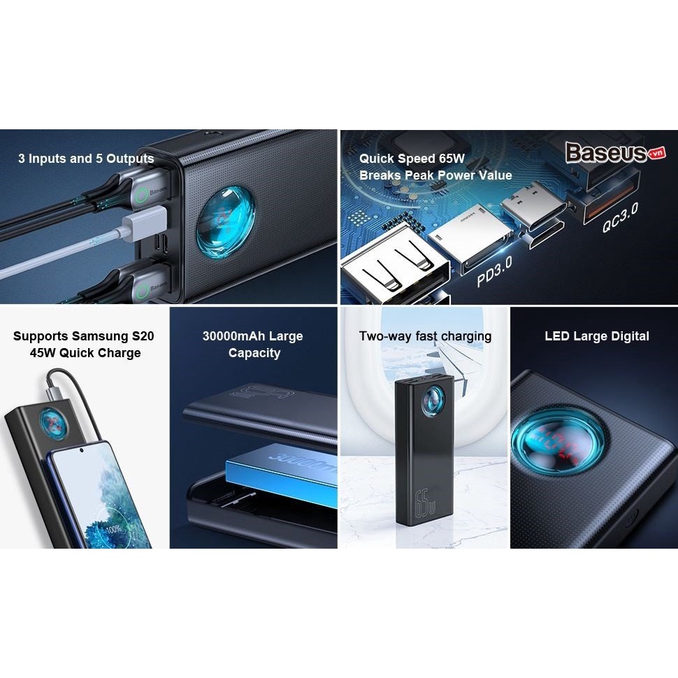 Baseus Amblight 65W thiết kế bề mặt nhám chống bám mồ hôi, dấu vân tay. Màn hình led hiển thị dòng điện cũng như phần trăm pin khả dụng. Pin được trang bị vi xử lý thế hệ mới giúp bảo vệ thiết bị cũng như bản thân pin, bên cạnh đó là độ ổn định khi sạc, an toàn tuyệt