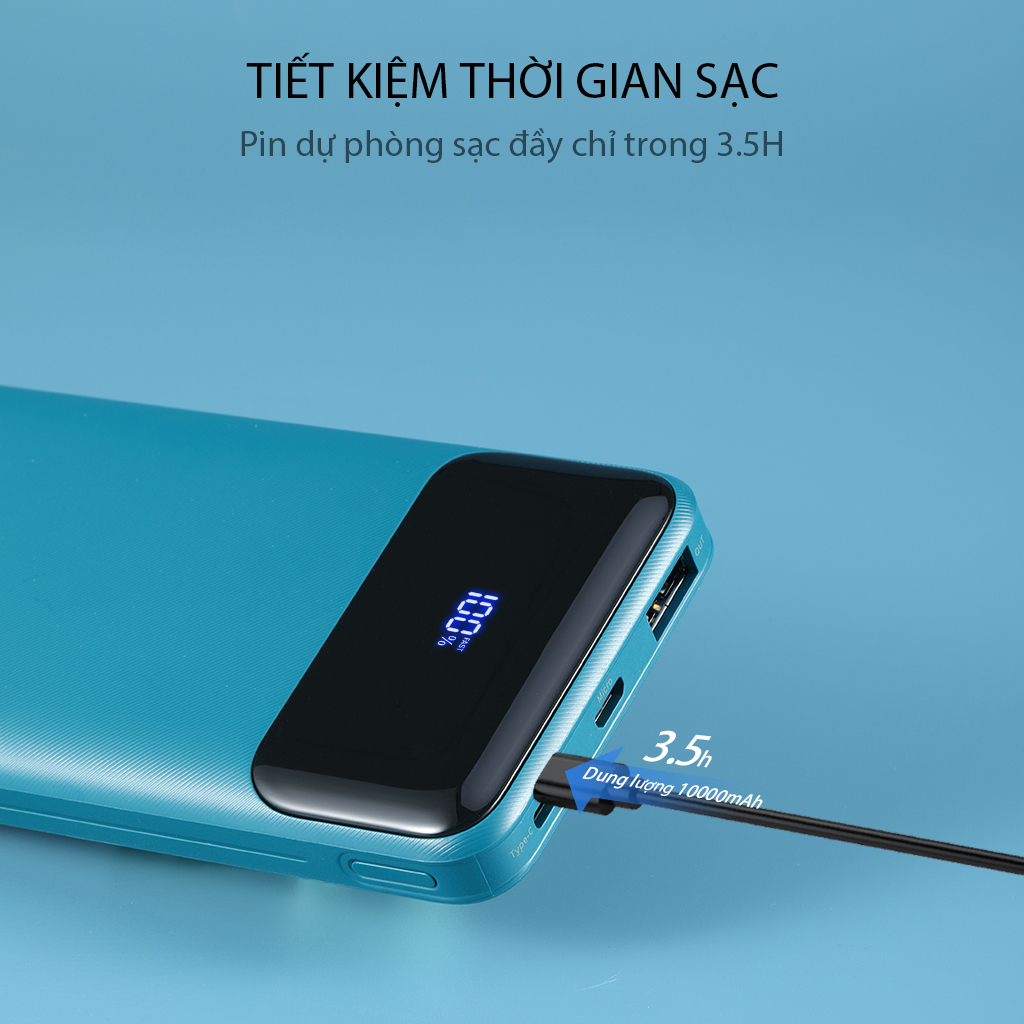 Pin Sạc Dự Phòng 10000mAh VIVAN VPB-X10 Sạc Nhanh PD/QC 3.0 20W - Output Type C & USB - BẢO HÀNH 12 THÁNG1. Dung lượng thực 10.000mAh 2. Sạc nhanh (PD / QC 3.0)3. 2 Cổng đầu ra: Type-C & USB 4. Trọng lượng siêu nhẹ: 238gram, dày 15mm5. Sạc đầy nhanh chóng chỉ 3.5h6. Màu sắc : Xanh và Đen Bộ sản phẩm gồm:- Pin sạc dự phòng 1 sạc pin VPB-X10 & 1 cáp sạc pin Type C- Cáp USB to type-C 3A Màn hình hiển thị phần trăm pin Sử dụng lõi pin cao cấp và bền bỉ , dung lượng thực hiệu suất cao Cổng ra Type-C & USB -A tích hợp sạc nhanh công suất 20W, pin sạc dự phòng dung lượng lớn, có thể sạc cùng lúc cho 2 thiết bị tiết kiệm tối đa thời gian sạc và an toàn khi sạc Hỗ trợ sạc nhanh chuẩn PD/QC 3.0. Các dòng iPhone 8-12 và sạc nhanh cho Samsung, Xiaomi, Huawei, Có thể đem lên máy bay Giá sản phẩm trên Tiki đã bao gồm thuế theo luật hiện hành. Bên cạnh đó, tuỳ vào loại sản phẩm, hình thức và địa chỉ giao hàng mà có thể phát sinh thêm chi phí khác như phí vận chuyển, phụ phí hàng cồng kềnh, thuế nhập khẩu (đối với đơn hàng giao từ nước ngoài có giá trị trên 1 triệu đồng).....