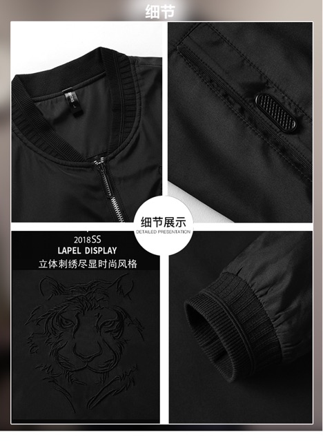 Playboy VIP mùa thu và mùa đông áo khoác nam lót lông và không lót lông sezi 50-100kg Áo khoác mỏng đầu hổ thêu