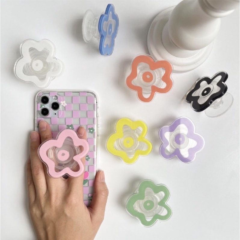 Popsocket giá đỡ điện thoại hoạ tiết hoa méo Màu sắc: Trắng, hồng, xanh, tím, cam,vàng,đen,... Công dụng: Dán lên ốp điện thoại chất liệu phẳng giúp bám dính tốt và làm đế cho điện thoại Các loại ốp: Tất cả ốp trơn