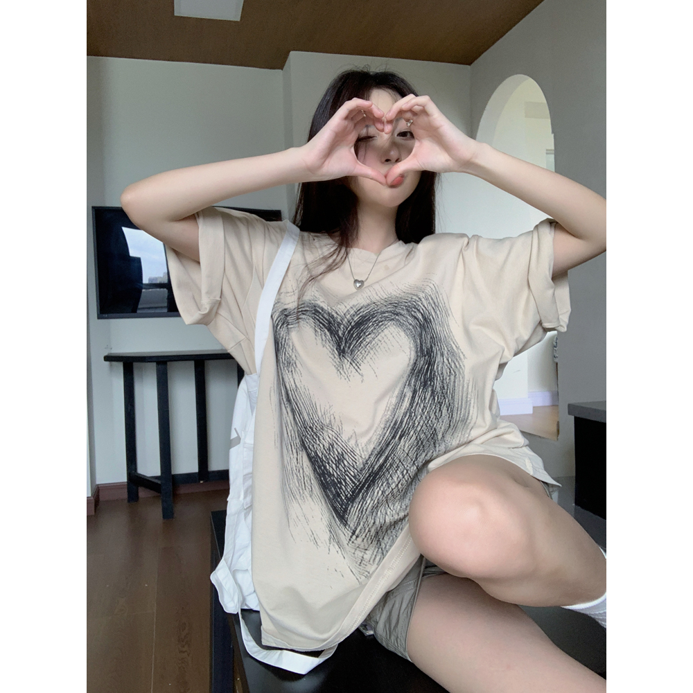 Porozi Áo Thun Tay Ngắn Dáng Rộng In Họa Tiết Trái Tim Phong Cách Hàn Quốc Thời Trang Mùa Hè Xinh Xắn Cho Nữ