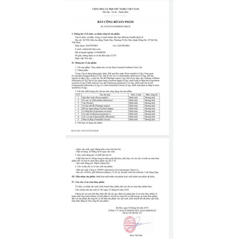 ☘ Công dụng: +bổ sung chất xơ , hỗ trợ tiêu hóa, giúp nhuận tràng và chống táo bón Đây là một sản phẩm tự nhiên liên kết độc tố và loại bỏ chúng khỏi cơ thể. +Pectin giúp làm sạch cơ bản đường ruột, cải thiện khả năng vận động của đường ruột. Trà Kuril và cây Phan tả diệp +Inulin có trong củ Cúc vu giúp cân bằng hệ vi khuẩn đường ruột. +Cây Cúc dại và Tầm xuân giúp tăng cường miễn dịch. ☘ Thành phần: bột quả tầm xuân,Guar gum, bột rễ cây cúc vu, bột táo, vỏ hạt cây mã đề, bột rễ cây thực quỳ Althaea, bột rễ cây ngưu bang, chiết xuất cỏ tháp bút, chiết xuất cây cúc dại, chiết xuất cúc la mã, cỏ chét, chiết xuất phan tả điệp ☘ Hướng dẫn sử dụng: rót vào cốc khoảng 200-250 ml nước ấm 50-60 độ C, cho 7,5 g( 1 thìa cafe đầy) bột sản phẩm vào cốc, dùng thìa khuấy cho tới khi tan đều và uống ngay. Uống 1 hoặc 2 lần/ngày ☘ Quy cách bao gói: 80g/ lọ ☘ Xuất xứ: Liên bang Nga ☘ Thương hiệu: Siberian Health ☘ date: 09.02 2023 ☘ SP không phải là thuốc và không có tác dụng thay thế thuốc chữa bệnh