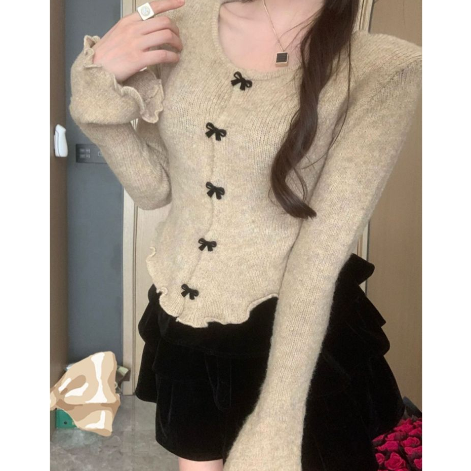 QADCOL Áo sweater Dệt Kim Cổ Tròn Đính Nơ Thời Trang Giáng Sinh Và Năm Mới Cho Nữ