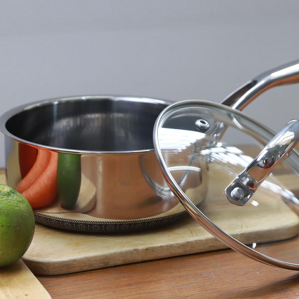 Quánh chống dính 16cm Inox 304 Kims Cook Noon Song 2 mặt 3 lớp đúc liền đáy từ nắp kính