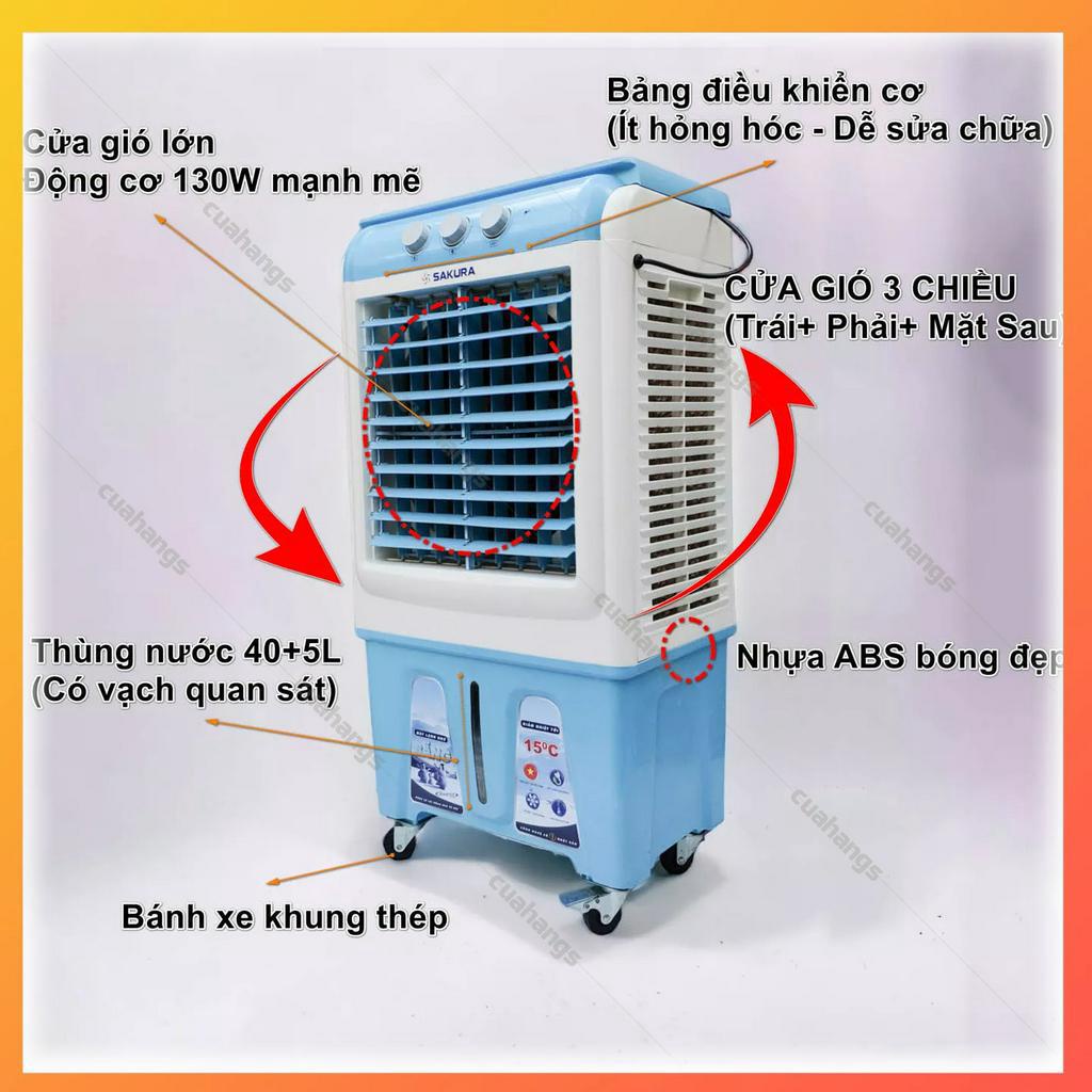 Quạt Điều Hoà Hơi Nước SAKURA 2023 - Làm Mát Hiệu Quả - An toàn sức khoẻ và Tiết Kiệm Năng Lượng + DỊCH VỤ GIAO HÀNG SIÊU TỐC NHẬN HÀNG 2 GIỜ TẠI Hà Nội và TP. Hồ Chí Minh + ĐỘNG CƠ LÕI ĐỒNG - GIÓ MẠNH - TIẾNG ỒN THẤP - CHO GIẤC NGỦ ÊM ÁI + Ổ BI BẠC ĐẠN - ĐỘ BỀN CAO +