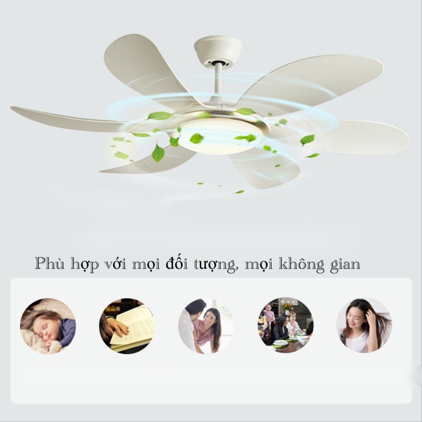Quạt trần đèn trang trí cánh cong,điều khiển cầm tay từ xa 6 chế độ mát có đảo chiều hút ẩm mùa đông,bảo hành 5 năm