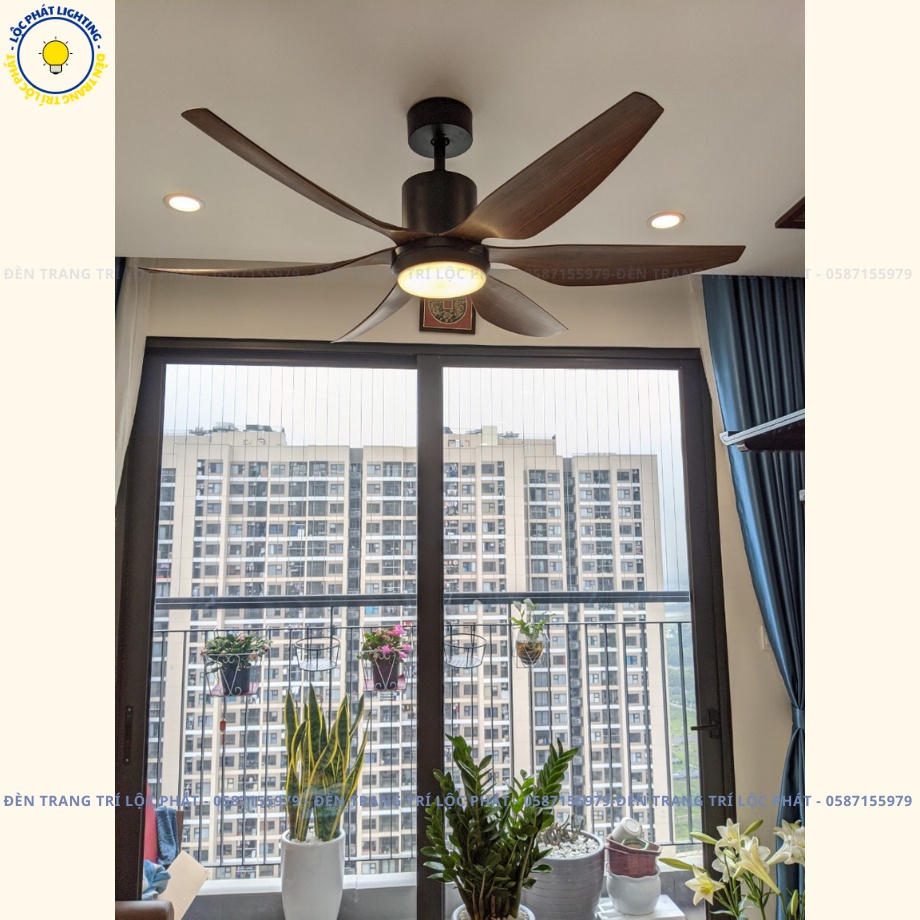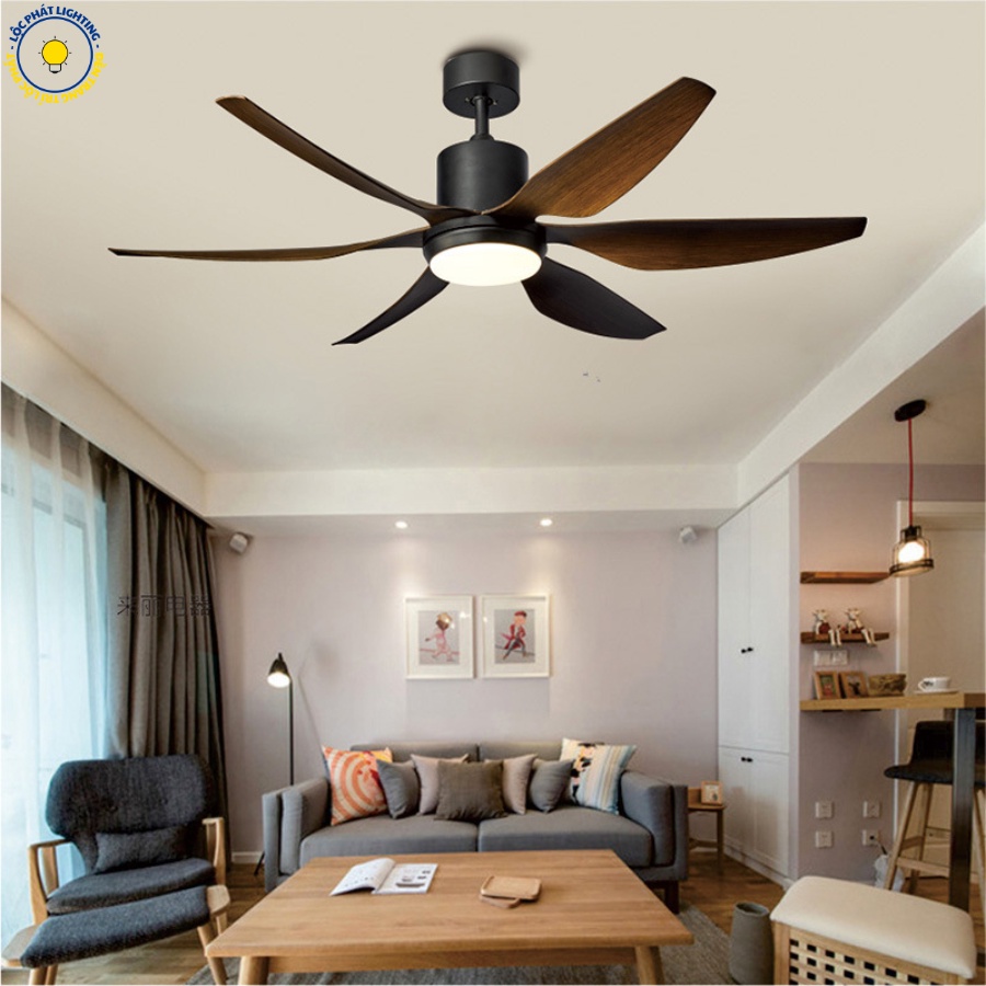 Quạt trần, quạt trần đèn 6 cánh Lộc Phát 6 cấp độ gió 3 chế độ ánh sáng trang trí phòng khách hiện đại