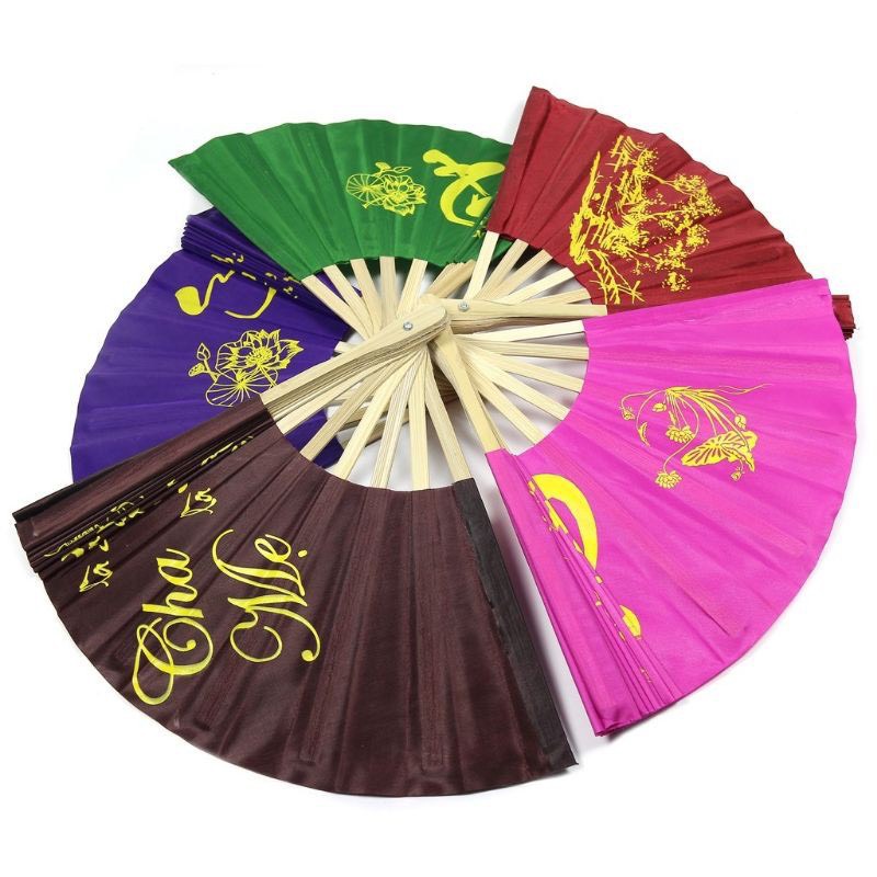 Quạt vải xếp chữ thư pháp quạt cầm tay bằng vải nan tre nhiều màu
