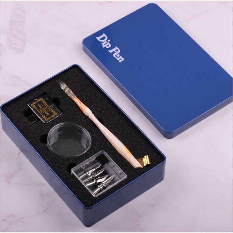 một set gồm: 1 bút 1 mực 5 ngòi bạn có thể dùng để làm quà tặng cho bạn bè, người thân, nhìn rất xinh luôn☺️☺️☺️