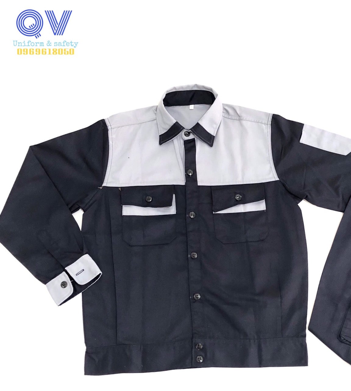 Quần áo bảo hộ lao động/ Bộ tím than phối ghi/ Vải kaki31