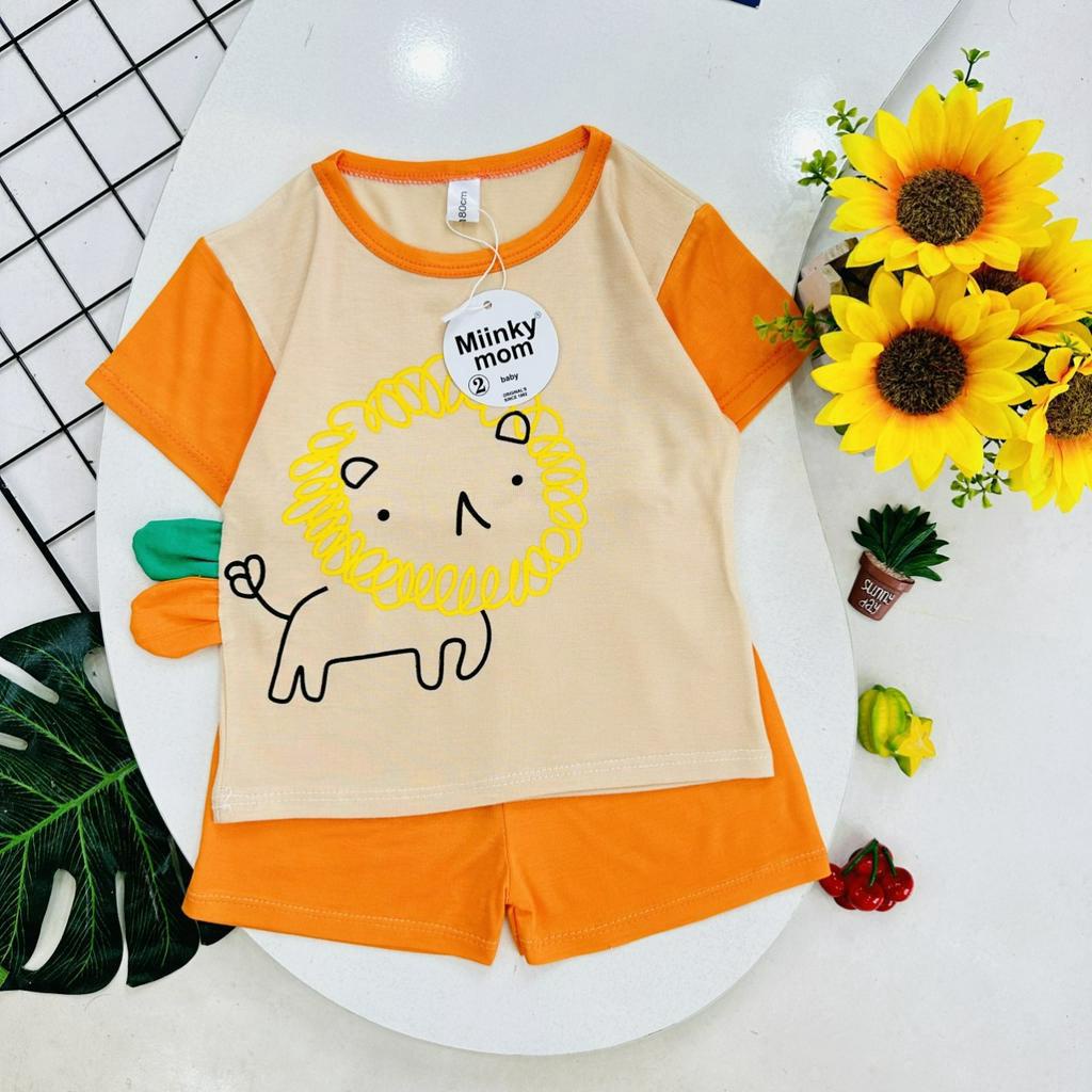Quần áo trẻ em Bộ cộc tay ngắn tay bé trai, bé gái vải thun lanh minky mom tai thú siêu cute