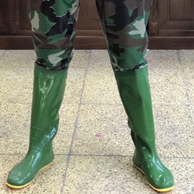 CHI TIẾT SẢN PHẨM - Chất liệu: PVC-TPR - Size: Từ 36 - 43 - Chiều cao thân ủng: 38.5 – 40.5 cm - Chiều cao màng ủng : 70.0 cm - Chiều dài đế: 23.5 – 27.5 cm - Chiều rộng đế: 8.5 – 10.0 cm - Xuất xứ: Hoa San, Việt Nam - Màu sắc: lục quân - Màu sắc đế ủng: màu vàng,