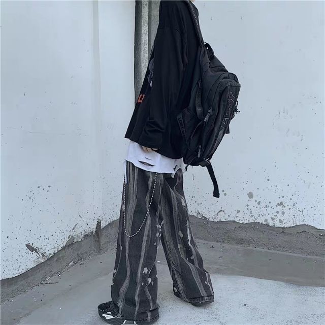 Quần bò loang ống rộng vảy sơn Retro Ulzzang Unisex siêu chất 😍