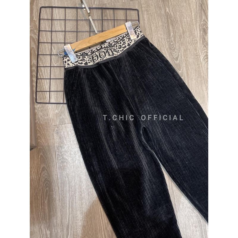 Quần baggy nhung tăm cạp chun chữ loại 1 dày đẹp thời trang cho nữ trẻ trung phong cách tôn dáng dễ phối đồ T.CHIC