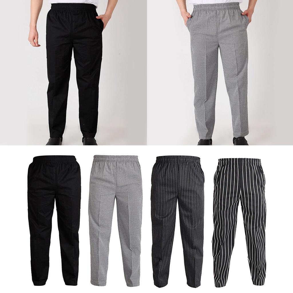 Thời gian giao hàng dự kiến cho sản phẩm này là từ 7-9 ngày Mô tả : Quần dài đồng phục đầu bếp co giãn cũng thích hợp cho người phục vụ quán cà phê Được làm bằng cotton polyester cao cấp, thoải mái, chất lượng cao, dễ mặc; Dễ dàng để làm sạch Có túi, tiện lợi, chống
