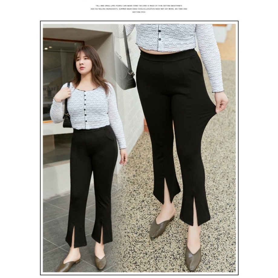 Quần dài bigsize nữ ống loe xẻ có túi trước QOLX