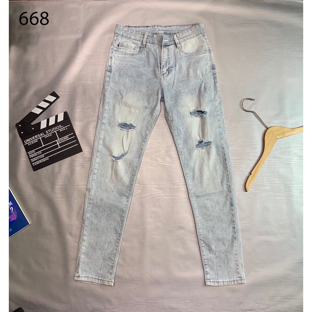 Quần jean nam rách gối màu xanh chất bò cao cấp co dãn 4 chiều cực đẹp rin trơn from dáng skinny đẹp SUMIO TL mẫu mới 4