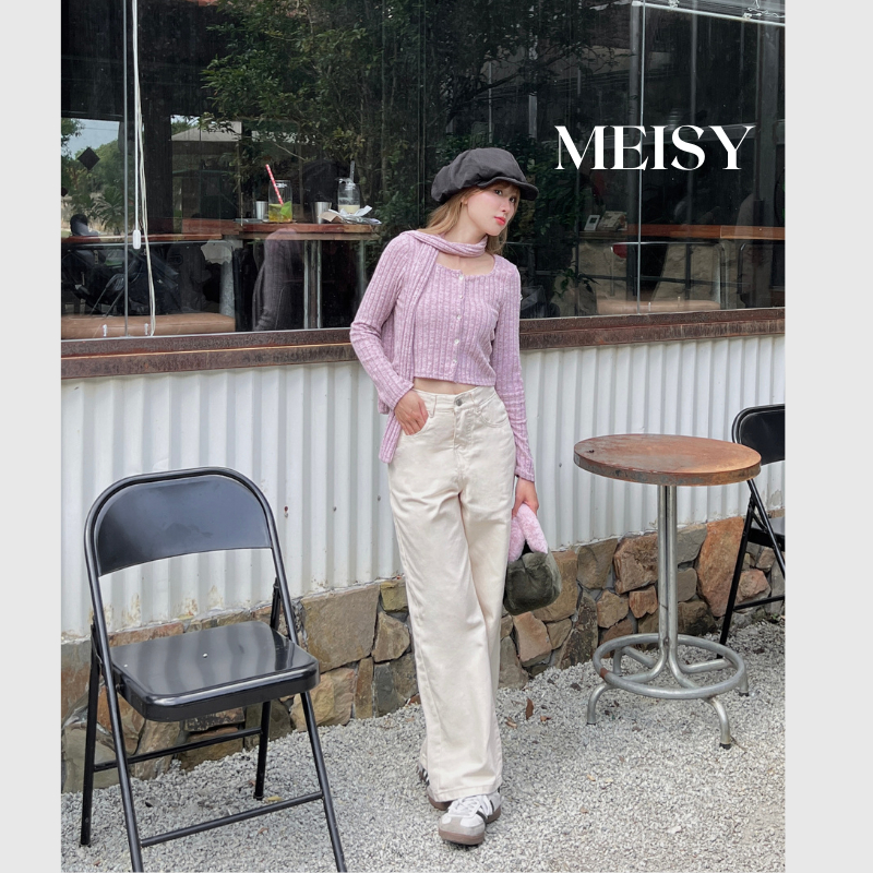 Quần jeans bò nữ ống suông rộng Meisy màu đen than dáng suông trơn chất không co giãn phong cách Hàn Quốc