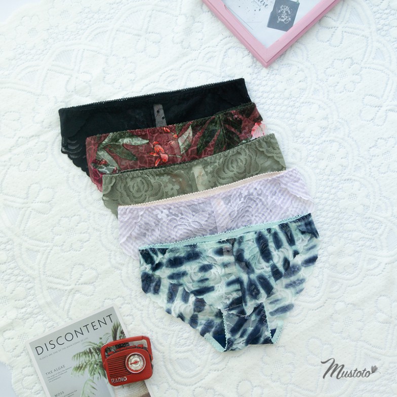 ĐẶC ĐIỂM SẢN PHẨM Quần lưng thấp, che phủ full mông. Chất liệu vải ren mềm mịn, co giãn tốt, thấm hút mồ hôi tốt cho cảm giác thoáng mát và thoải mái dễ chịu. 6 màu: da, đen, tím, xanh loang hoạ tiết, hoạ tiết hoa đỏ, xanh rêu. Size: S/ M/ L/ XL (Đây là form quần lưng