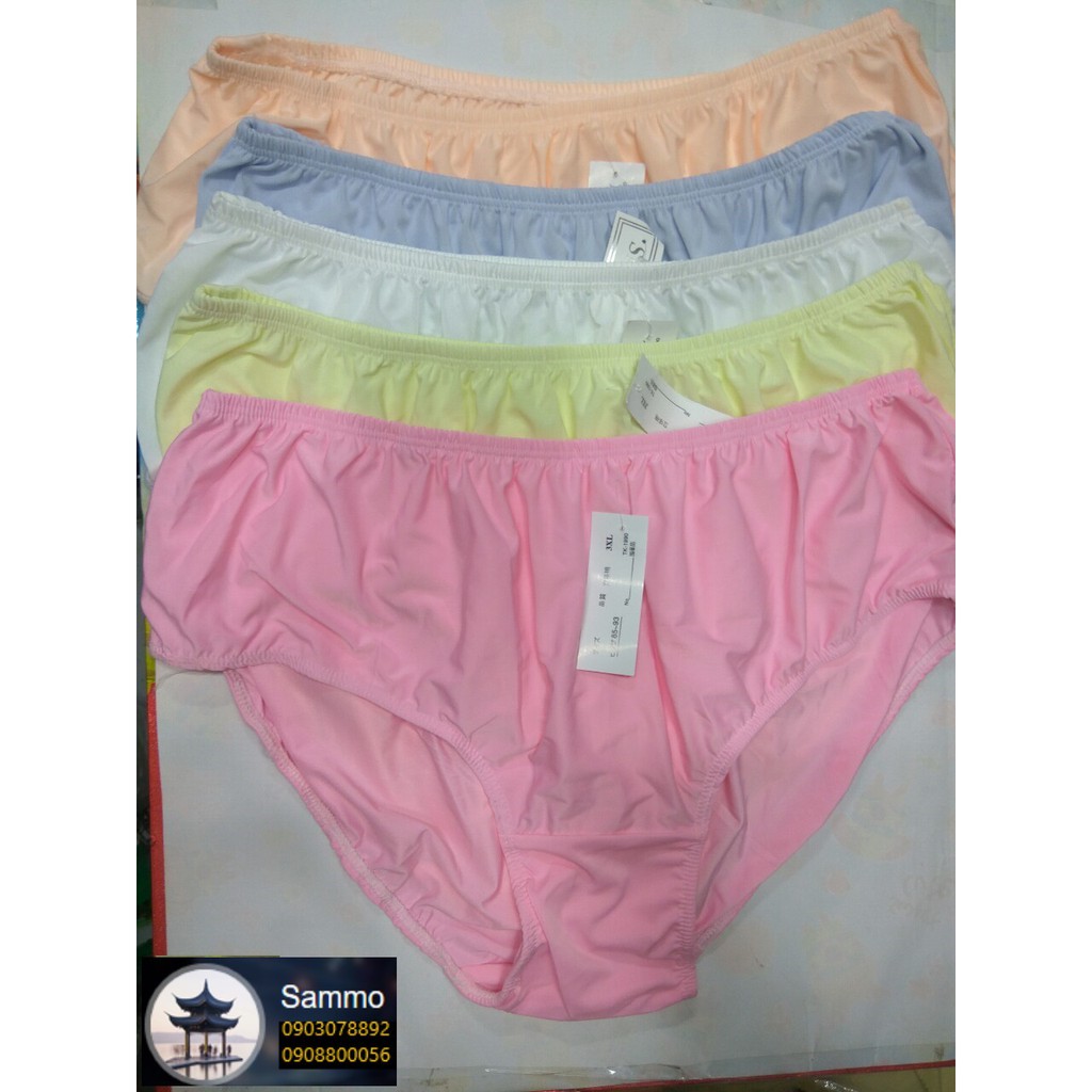 - Quần Thun Lạnh Size Đại - Quần lót thun lạnh lưng luồn với kiểu dáng đẹp - Lưng thun luồn co dãn nhẹ nhàng, vòng mở đùi rộng cho không gian cử động thoải mái. - Màu : đen, trắng, cam, hồng, vàng, da, xanh dương, đỏ đô -Size: L, XL, 2XL, 3XL + L : từ 45kg -> 55