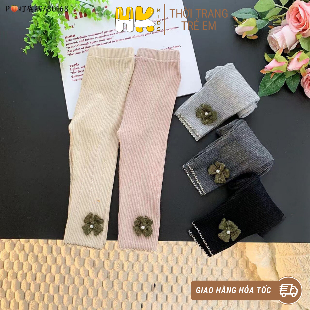 Quần legging dài cho bé gái HK KIDS chất cotton gân tăm mềm mại co giãn 4 chiều size 2-6 tuổi