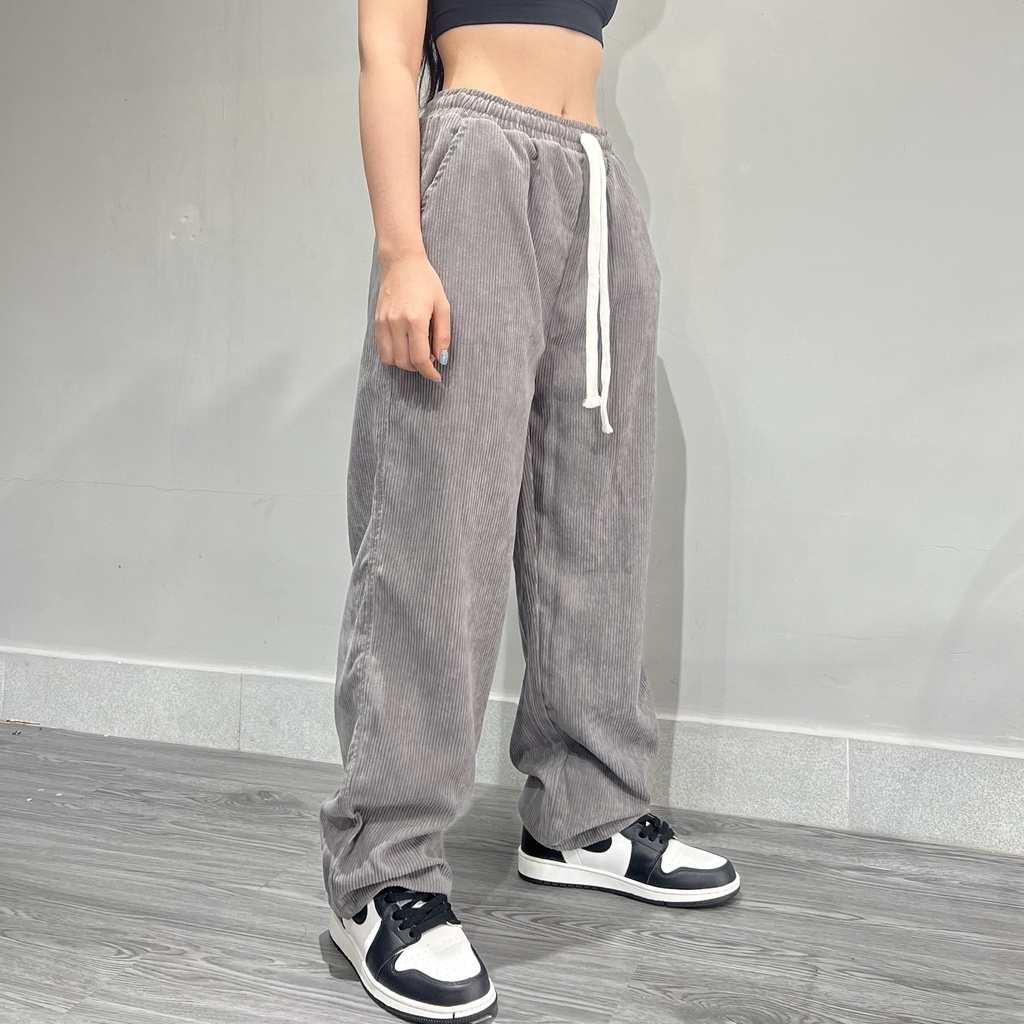 Quần nhung gân ống rộng dáng suông nữ Baggy - loại dây bản dài
