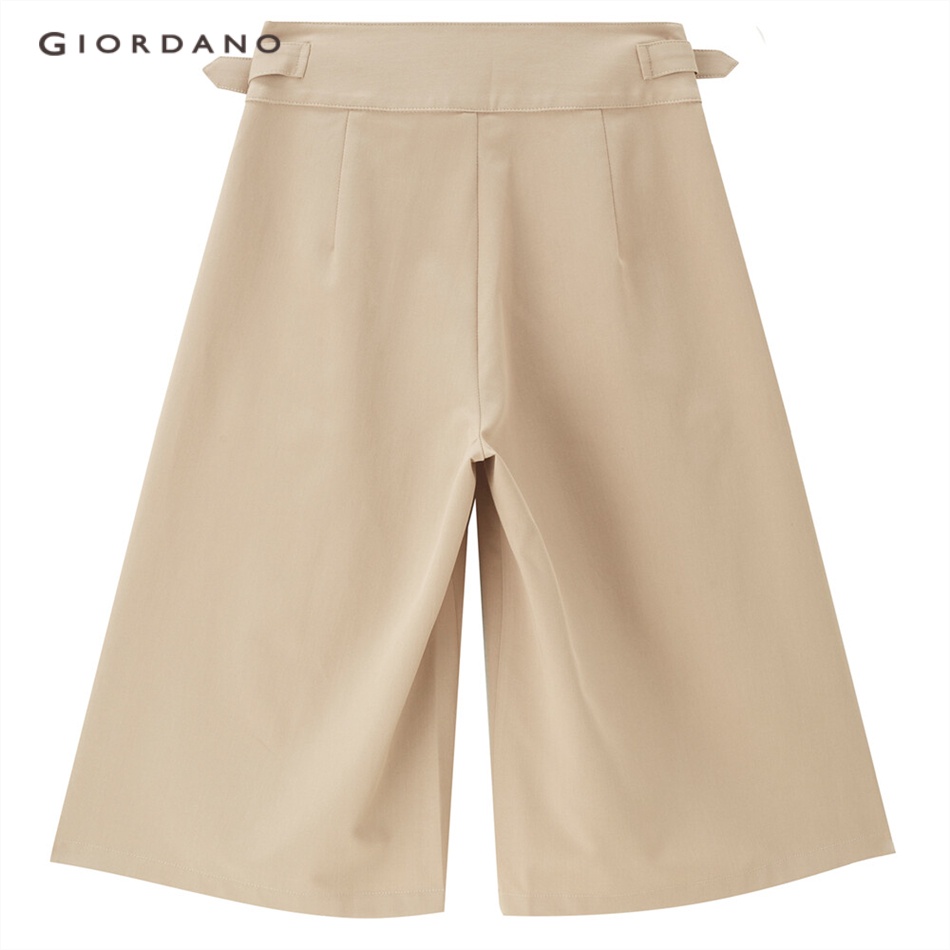 Quần short GIORDANO 13423321 xếp ly cạp vừa có thắt lưng phong cách thường ngày cho nữ