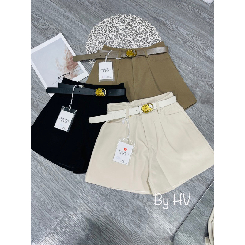 Quần short vải cạp cao kèm dây lưng QC b135
