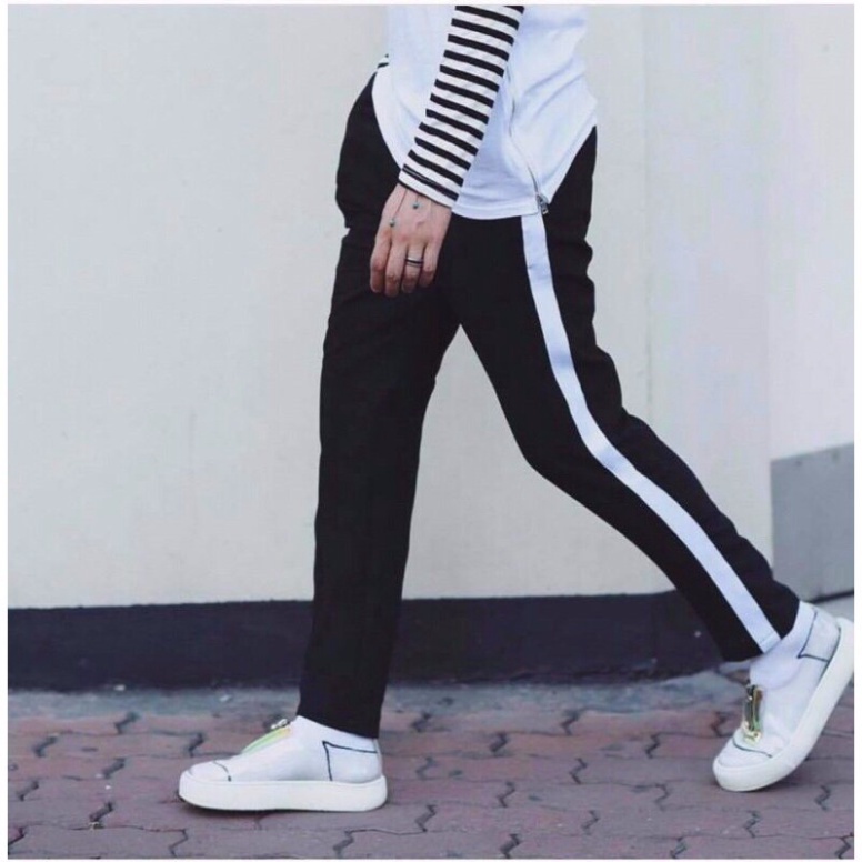 Kiểu dáng : bo lưng, Ống suông + Chất liệu : quần trơn ống suông là chất da cá quần có sọc là vải poly mịn và mát + Màu sắc : như hình + Size :M, L, XL xxl + Sản phẩm phù hợp cho cả nam và nữ Size M cao dưới 1,55 cân nặng dưới 53 Size L dưới 1.67 nặng dưới 62 kg size