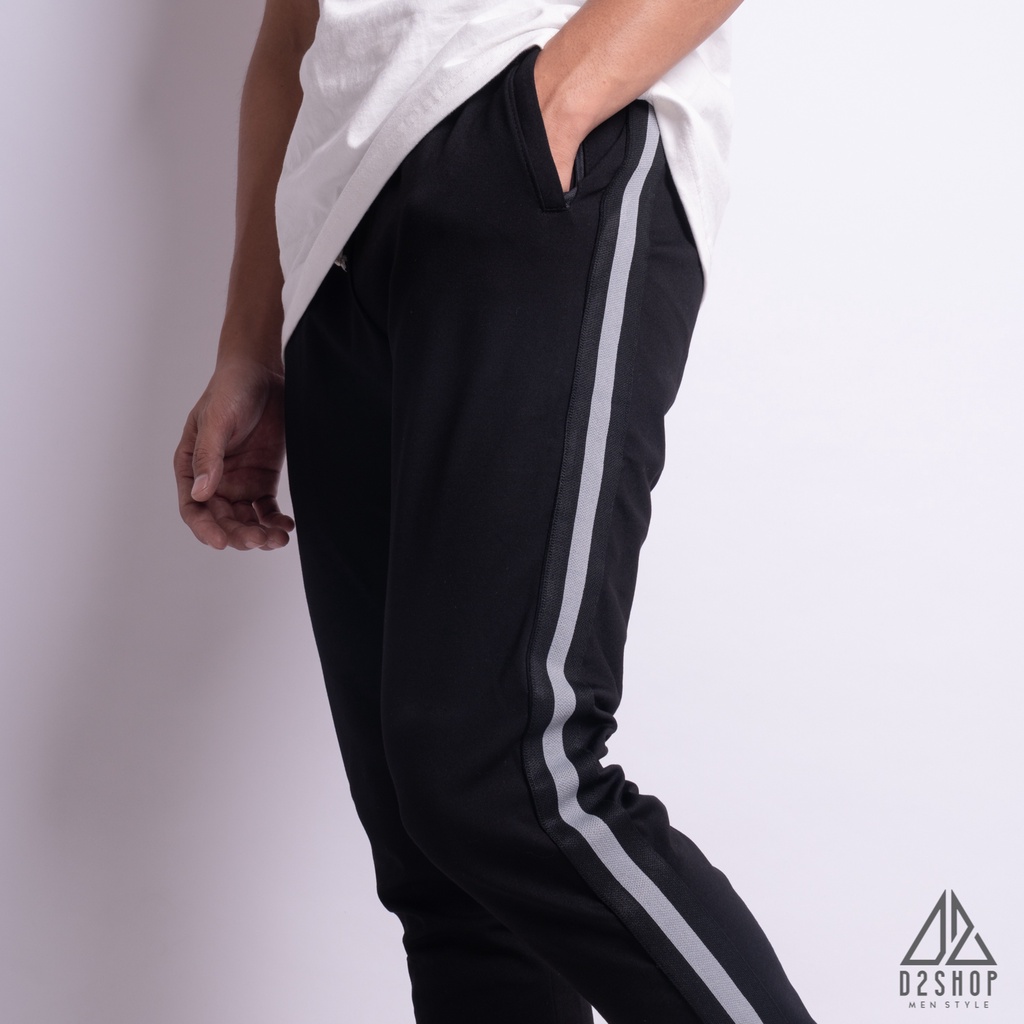 Quần thể thao nam D2shop, quần thun nam co giãn màu đen, sọc xám